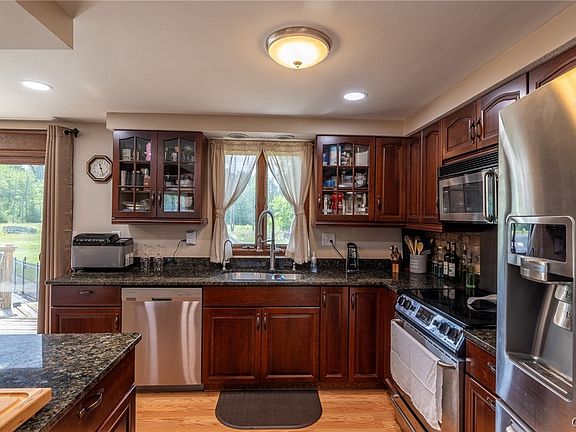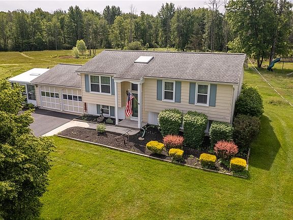 Enjoy your privacy with this immaculate 3 bedroom 1.5 bath home. Light and bright, this home offers new flooring, large eat in kitchen with stainless appliances and granite counters. 2 bedroom and a newly renovated full bath, family room and office area round out the first floor. Lower level offers a bedroom, half bath, family room and laundry room. Step outside to the brand new brick paver patio and fencing which compliments the in ground pool and fire pit....perfect for entertaining. Just down the driveway, you will find a 36x54 beautiful pole barn with electric, concrete floor and plenty of storage. Relax in the cozy 3 season room and enjoy the serene 5.89 acres of land complete with a pond and hiking trails.