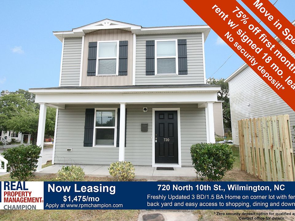 ** Move in Special ** 75% off the first month's rent with a signed 18-month lease ** Zero Security Deposit option available for qualified applicants. Restrictions apply, contact us for details. This newer 3 BD/1.5 BA home was built in 2018 and has been recently updated and is ready for you to move in! The recent upgrades include fresh paint throughout, new carpet on the upper level, new fence and more. The covered front porch welcomes you home as you enter the main living area which features an open floor plan and beautiful LVP flooring that flows seamlessly throughout the main level. The spacious living room offers a view of the front yard and opens into the kitchen and dining room. A refrigerator, range, dishwasher and double sink are included in the kitchen. You will enjoy the private back yard which has access from the dining room. A half bath completes the main level. The upper floor features new carpet in all three bedrooms, a full bath that is just steps away from the bedrooms and a stacking washer/dryer that is conveniently located in the master bedroom. Located on a corner lot with easy access to all the shopping and dining that Wilmington has to offer. We are an Equal Housing Opportunity Management Company and abide by the term of the Federal Fair Housing Act. Pets are negotiable and must have prior approval and required pet fees. Aggressive breed list may apply. Contact listing agent prior to submitting application. No Smoking, e-cigarettes or vaping. All applicants over 18 years of age are subject to a background check, including criminal, credit, employment verification, and past tenancy.