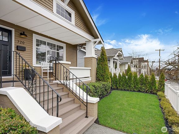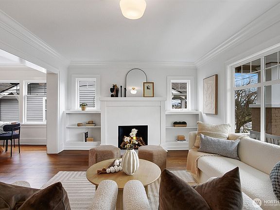 Welcome to this fully updated Fremont Craftsman. Period details intact, with modern updates throughout. Spacious living area with fireplace & built-ins. Open dining room, flooded with light + leaded glass. All refinished hardwoods throughout, & remodeled kitchen with quartz &  custom cabinets. New appliances, induction range, & comfy breakfast nook. Remodeled bathrooms with period tub on main, & modern glass surround in lower level. Impeccably designed laundry, office nook & media room. All new carpet & paint. Covered porch, front lawn, & private back patio for your outdoor needs & entertainment. Detached one car garage. Ultra-convenient location just a short walk to Fremont restaurants & bars, + to Woodland Park & Phinney Ridge amenities.