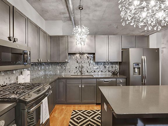 Stunning 720 Lofts in the heart of the North Loop! This 1BR/1BA features exposed duct work, concrete walls, 10ft ceilings and a spacious balcony. Large kitchen with stainless steel appliances, tile backsplash and a center island. Urban living in Minneapolis' Warehouse District. Walking distance to dining, entertaining, breweries, shopping and Target Field.