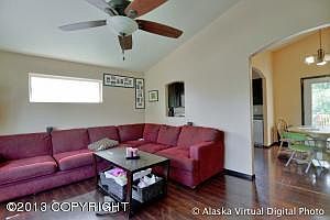 Spacious family home in a terrific Palmer neighborhood. Close to elementary schools. Vaulted ceilings throughout the home, light and bright, with laminate wood flooring. Bay window in the master bedroom. Updated in 2012, new roof, kitchen cabinets, counter tops, deck in the front, and paint inside and out. Large fenced in back yard with storage shed. Nice sized deck off of the dining room.