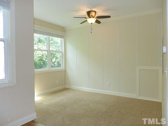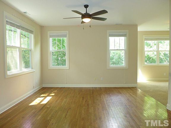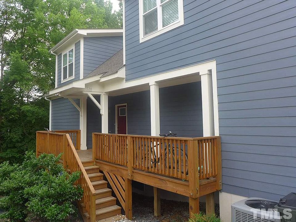 3 levels. Shared side deck. Main level: living, dining, kitchen, full bath. Hardwoods in kitchen/dining, carpet in living. Ceiling fan in each space. Kitchen has granite counter tops, stainless appliances. Lower: 3 bedrooms, 2 bathrooms. Carpet, ceiling fans in bedrooms. Tile flooring in baths. Stacked washer/dryer. Upper: 1 bedroom, with carpet, ceiling fan. 2 parking spaces in shared drive. Pet with fee and prior approval. $15/mo filter fee.