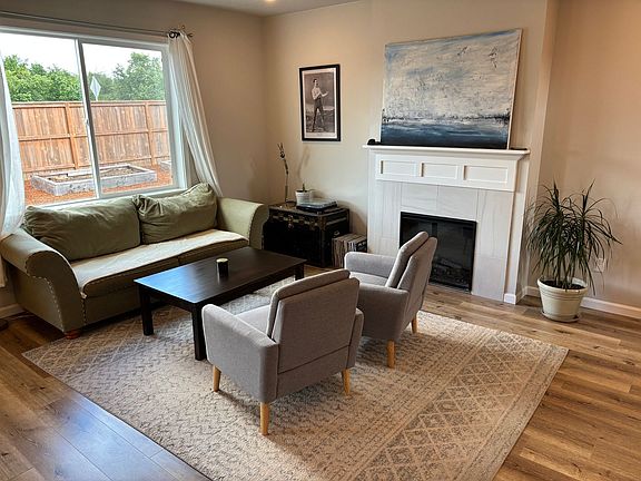 Beautiful two-story home, 1631sf, with 3 bedrooms, 2.5 bathrooms and a 2 car attached garage. Electric Central Heat with A/C and Electric Water Heater. Main floor has LVP flooring and offers a great room with an electric fireplace that opens up to a spacious dining kitchen area. The kitchen features a refrigerator, electric range/oven, dishwasher, microwave and garbage disposal, a pantry and island for bar seating. A sliding door leads to a covered back patio. Upstairs is the master suite with a spacious walk-in closet, bathroom with double sinks and a large tiled shower. Two additional bedrooms and the laundry area complete the carpeted upstairs. Washer/Dryer are included "As Is". NO Cats 1 Small-Medium Dog (40 lbs & under) Showings Start NOW