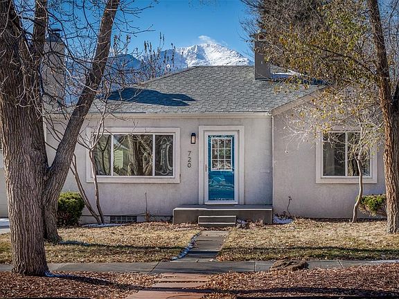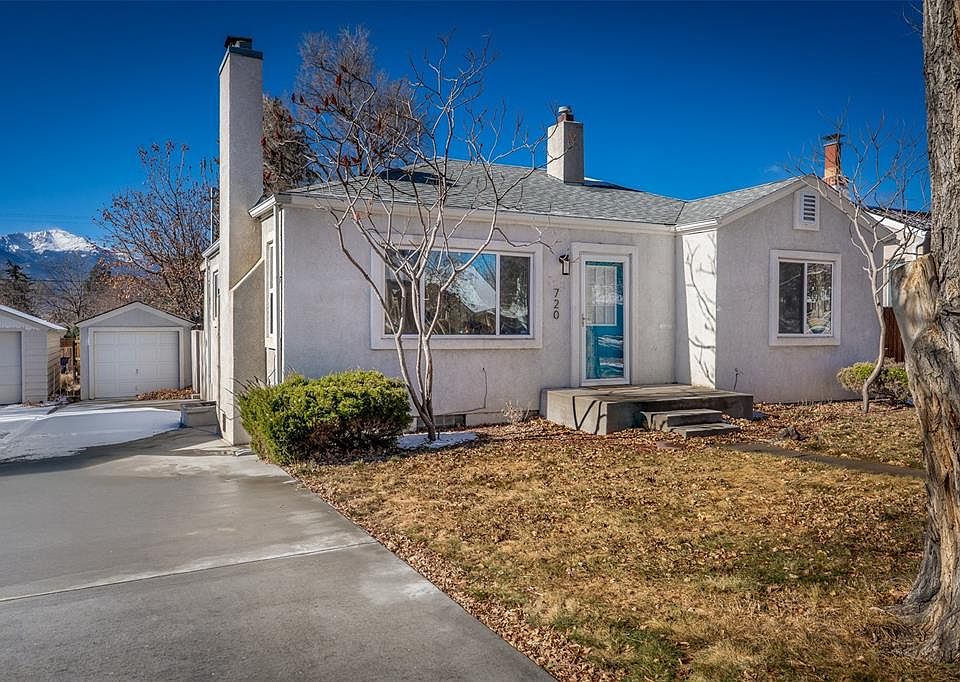 Welcome home to this charming ranch-style house with Pikes Peak views! Situated in the Divine Redeemer neighborhood, this home features 3 bedrooms, 2 bathrooms, a sunroom, and a one-car detached garage. Hardwood floors run throughout the main level, including the formal dining room and living room with a wood-burning fireplace. The kitchen has stainless steel appliances, a tile floor, and overlooks the sunroom and back patio. The lower level includes an additional bedroom, family room, laundry area, and a half bath. The furnace and A/C were installed in 2019, and the water heater in 2020. A new driveway was poured in 2021. Enjoy stunning views of Pikes Peak from the spacious back patio and large grassy backyard. Alley access leads to the backyard, which features a sizable storage shed and RV parking. This unbeatable location is just minutes from downtown Colorado Springs, the Olympic Training Center, Memorial Hospital, Boulder Park, schools, shopping, and bike trails. Don’t miss this rare opportunity to own a home that combines vintage charm with incredible convenience!