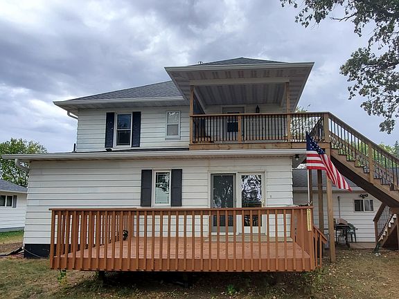 This grand two story 6 bed 3 bath home has been lovingly maintained throughout the years. The striking kitchen with it's custom cabinets, stainless steel appliances is complimented with the original pantry, and an island. Patio doors lead out to a deck for grilling and relaxing. Formal dining room with beveled glass French doors leads into a spacious living room with a cozy fireplace. Updated bathroom on the main floor includes tiled shower, heated floors, custom vanity and a jacuzzi tub. Master bedroom has a touch of the original home with a partial bead board ceiling. Original oak woodwork and doors just shine throughout. All windows in the home have been updated with double pained inserts. The upper level flaunts three bedrooms, a full bathroom and a kitchen. This level could be used by your family or rented for additional income. Two furnaces and AC units. Basement has been updated with two bedrooms and a family room. Heated two stall garage, & detached garage.