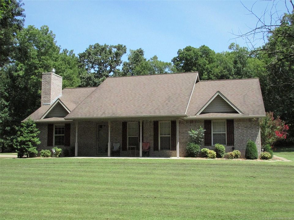 Park like Acre serene setting with brick attractive Custom home built in 2003! Located on quiet dead end in Ft. Gibson this 3 bedroom plan was converted to 2 bedrooms. Spacious open living/dining/kitchen design. Quality construction with extras including indoor safe room, gas fireplace, concrete sidewalk all around, 16"studs, radiant roof, leaf guard gutters, professional landscape, covered front porch, nice screened in patio, impressive over sized garage, tons of storage/ large closets. Energy efficient!