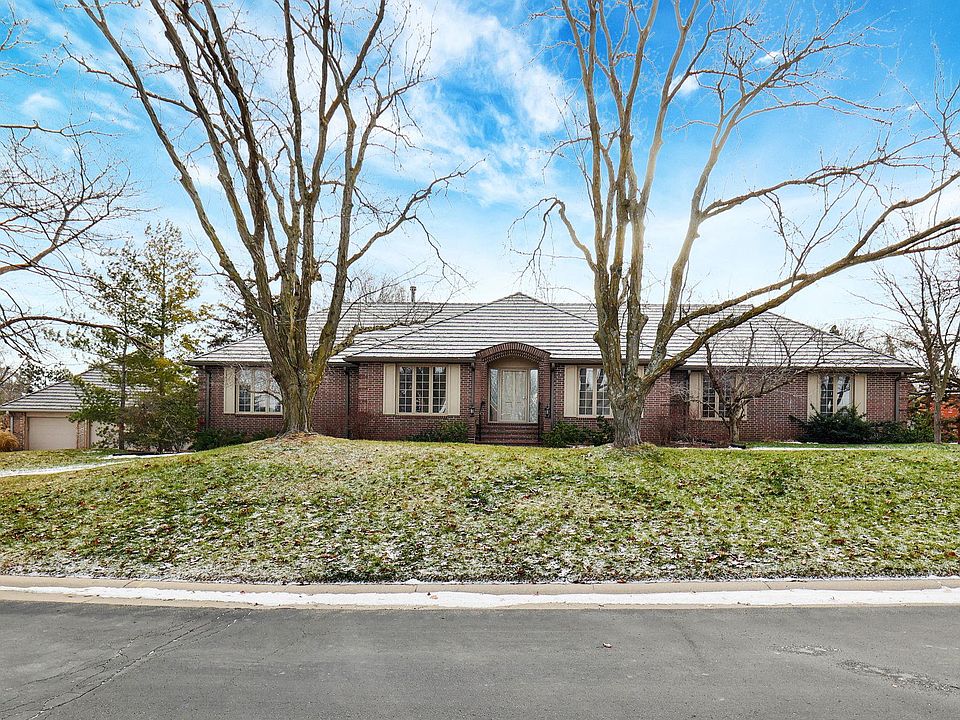 This exceptional residence is a true gem, boasting a stunning front street appeal, tree lined circle drive and spacious rooms that are sure to leave a lasting impression. The full-brick exterior is complemented by an elegant arched front entry, a DaVinci roof and oversized windows that flood the home with natural light. Upon entering you are welcomed by a foyer that leads to expansive formal living and dining rooms on either side. Main floor family room features a floor to ceiling brick fireplace and a captivating corner of oversized windows overlooking the back yard. Kitchen is a chef's delight equipped with all appliances, ample cabinet and counter space, center island and under cabinet lighting. The informal dining area boasts four beautiful oversized windows offering view of deck and backyard. New engineered hardwood flooring for a dramatic effect. Situated in a sought after golf course community this home and neighborhood equal a lpiece of paradise.