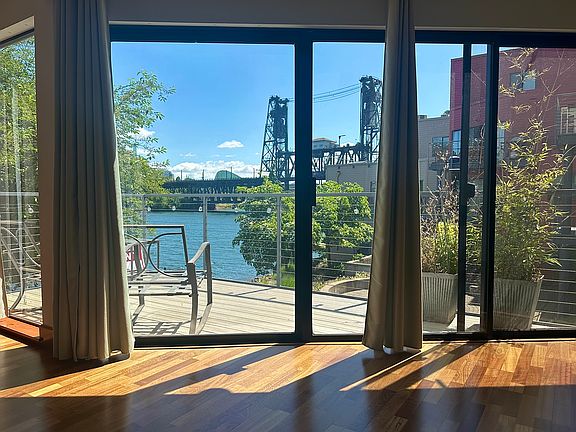 GORGEOUS Willamette River views from both floors and TWO private decks. Freshly painted, remodeled kitchen with new lighting. Both floors with newly remodeled bathrooms with walk-in showers. All appliances in unit. One covered assigned parking space. 24 hour security. Hot tub open all winter, pool open all summer! Be ON the river walk, watch river traffic go by under the Steel Bridge. Walk to downtown and the NW Pearl District. Blocks from Amtrak, Max lines, E-bikes and streetcar. Owner pays water, garbage, security and other condo fees. Renter pays electric thru PGE and cable/wifi. One parking space for the unity - parking rules strictly enforced. Smoking in condo is strictly prohibited - breaking this policy will result in fines and/or loss of security deposit. Small dogs okay upon approval. No cats please.