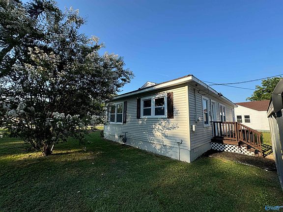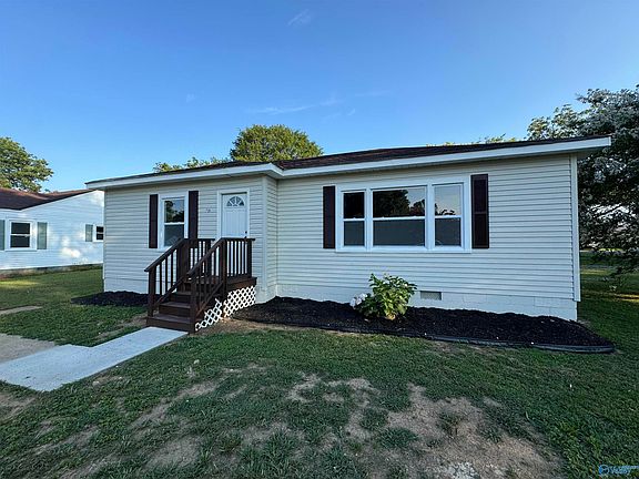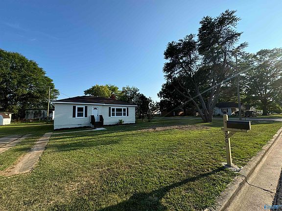 Renovated home on a spacious corner lot. Conveniently located close to downtown Moulton, with easy access to Decatur and Huntsville. The interior has an open floor plan with 2 bed/1 bath. Interior upgrades include fresh paint, 8 in hand scraped laminate hardwoods, new interior hardware and fixtures. The kitchen features new cabinets, countertops, subway tile backsplash, and a new stainless steel appliance package.The bathroom includes a new tub, tub surround, vanity, toilet, and lvp flooring. Fresh exterior paint. New Vinyl windows. Large detached garage and carport. Multiple driveways offers plenty of parking. Fresh landscaping.