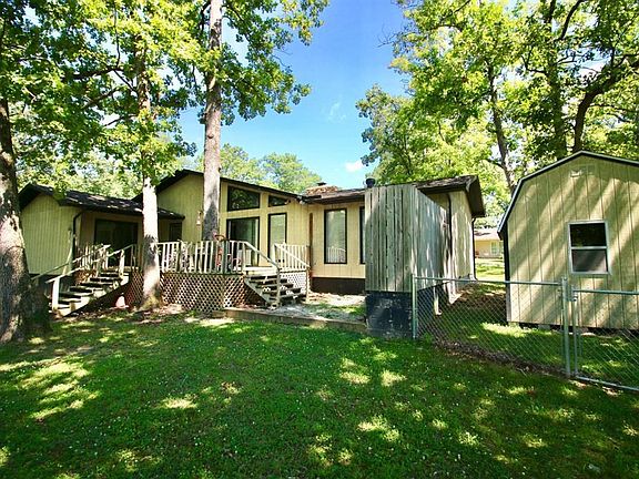 Looking for a Well Established Good Neighborhood to live in, look no further... In Hickory Hills, Corner Lot with a Nice Home with Open Floor Plan, large living room glass doors leading out to back deck and a floor to ceiling stone fireplace, kitchen, 2 large bedrooms (could be divided) with each bedroom having their own full bathroom. Storage building and chain link fenced for your pets.