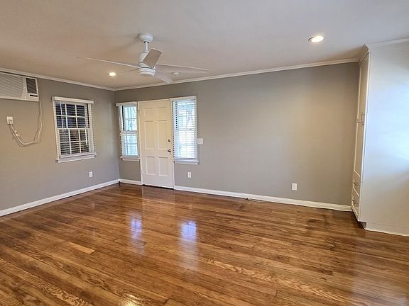 This large, unique and charming studio home is now available for the discerning resident. The fully air-conditioned home comes with built in closets and drawers, designed to provide more usable living space for the resident. The designer kitchen is highly functional with large easy to clean quartz counter tops, and a built in eating counter for two. The large kitchen has stainless steel appliances, refrigerator, and dish washer, and has room for an additional bistro table and chairs. Adjacent to the kitchen is a separate laundry room with built-in cabinetry which can also accomodate a work-at-home desk. Douglas Fir hardwood floors run throughout the home. Out the back entry door is a private patio in an expansive, well maintained back yard. Plenty of on-site parking spaces are provided. Pets are not allowed.