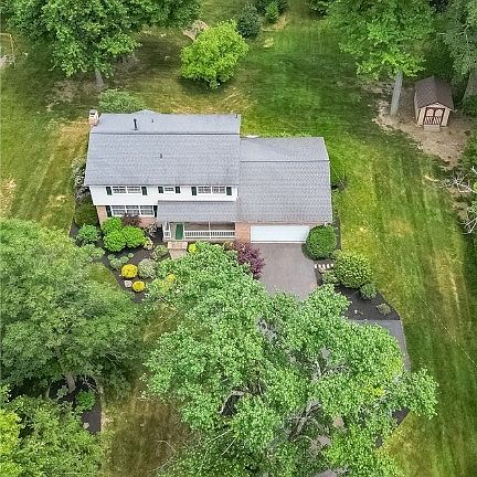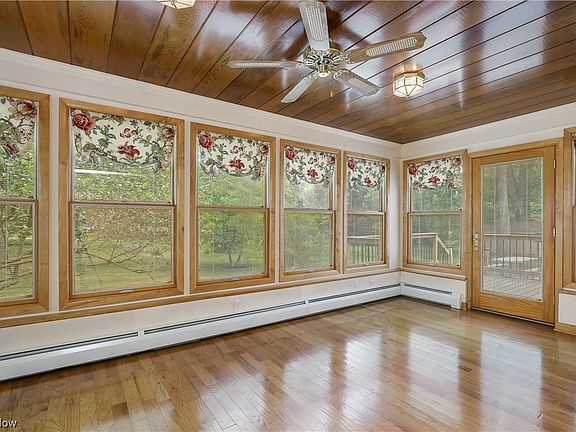 You'll adore this custom built one-owner home in Hartville's Indian Village neighborhood. Situated on .65 acres of gorgeous wooded land this home is quiet and peaceful, yet is within walking distance to Historic Downtown Hartville. Enter into the foyer and step over into the bright front formal living room with large windows that allow natural light to stream into the home. This classic colonial has been modernized to a more open first floor layout where the large kitchen flows into both the dining room and the expansive great room with a brick fireplace wall. Need a little more space? The great room opens to a lovely four-season room that both overlooks and opens via a doorway to the wooden deck and a lovely backyard oasis with a newer storage shed. Fabulous hardwood floors and custom maple lighted cabinets add to the charm and character of the home. Entering from the 2-car subway tiled garage you'll have access to the laundry/mud room with a closet, a first floor office, and a conven