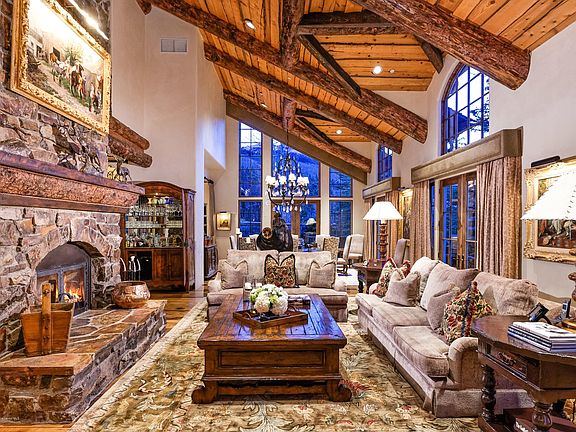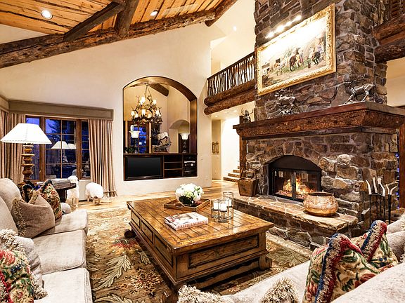 Located in the Prestigious Pines neighborhood, this mountain estate is well-appointed in design, location, and luxury. The property boasts panoramic views of Snowmass and offers direct ski-in/ski-out access via The Pines private ski trail system. The home was magnificently designed by Robert Trown, and no luxury feature has been overlooked. With six spacious bedrooms and six and a half baths, it offers the perfect array of guest suites and bunk rooms to host family and friends. Stunning reclaimed timber beams and flooring, and soaring ceilings elevate the grandeur. Stone patios and a water feature grace the East and West side, which provide space for outdoor entertaining and a custom elevator provides easy access to all three levels of the home.