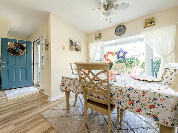 Welcome to Sea Meadow Village. This light and bright townhouse style condo is move in ready! It has an updated, eat in kitchen with stainless steel appliances and granite countertops. The large living room has plenty of space and the new slider leads out to a small deck and a private backyard. The first floor also has a half bath and a stackable washer and dryer. Upstairs are two large bedrooms and a full bath. There is also a small balcony off the primary bedroom. Lots of storage with the full basement. Rare to find in a condo! Pets allowed with restrictions.