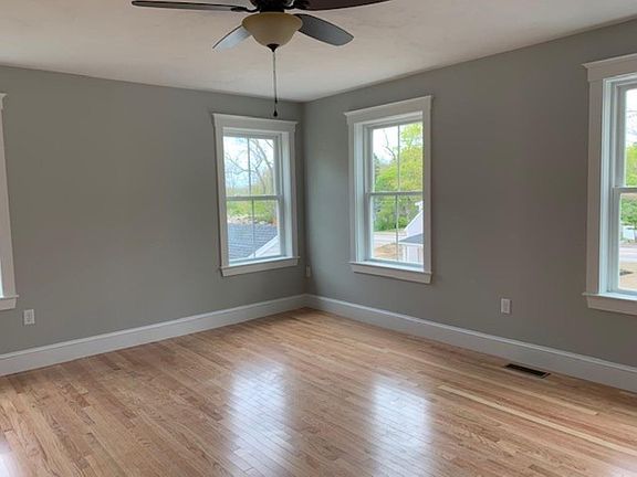 Brand new construction. New England farmhouse. 9 foot ceilings on first floor. All hardwood floors throughout. 3 bedroom, 2 1/2 bath. Master bath has whirlpool and walk in shower. House comes with gas fireplace with built in bookshelves. Kitchen has granite countertops, stainless steel appliances. Beautiful deck overlooking 1/2 acre lot. This house has many quality features.