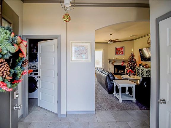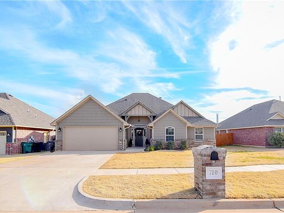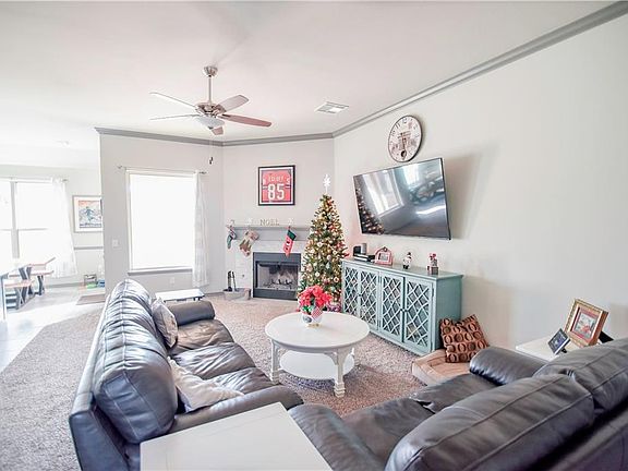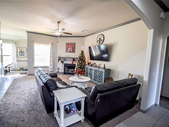 Beautiful home in sought after Chisholm Crossing Addition! All bedrooms have ceiling fans, there are granite counter tops throughout the home, and a wood burning or gas option fireplace perfect for those quiet evenings in the living room. This home features a bright and open concept, great for entertaining. The kitchen features stainless steel appliances, and backyard has a covered patio with a gas hook up, sprinkler system and an in ground storm shelter in the garage. Neighborhood features a playground and splash pad.