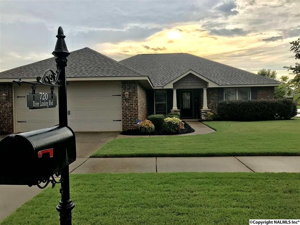 Full brick home on a beautiful corner lot. Family room has a vaulted ceiling, open floor plan and stone stacked fireplace with beautiful wood floors. Plenty of counter space and cabinets in the kitchen. Isolated Master Suite with trey ceiling. Privacy fenced backyard with a nice covered patio. Close to Redstone Arsenal, I565, Airport, shopping and restaurants.