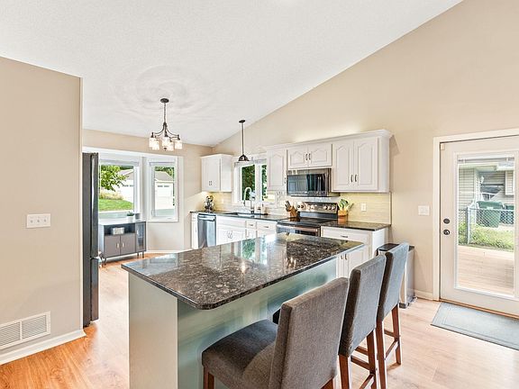 This 5 bedroom, 3 bathroom, 4 level split offers ample space and modern amenities. Inside, the open floor plan showcases a kitchen with granite countertops and stainless steel appliances. Cozy up by the fireplaces located in both the living room and family room, or relax in the second family room on the lowest level. The 3 car finished and heated garage with epoxy floor provides plenty of room for vehicles and storage. The large deck overlooks a fenced in backyard with shed. The furnace and air conditioning have been updated, ensuring year round comfort. This home combines functionality with style. Home Warranty included.