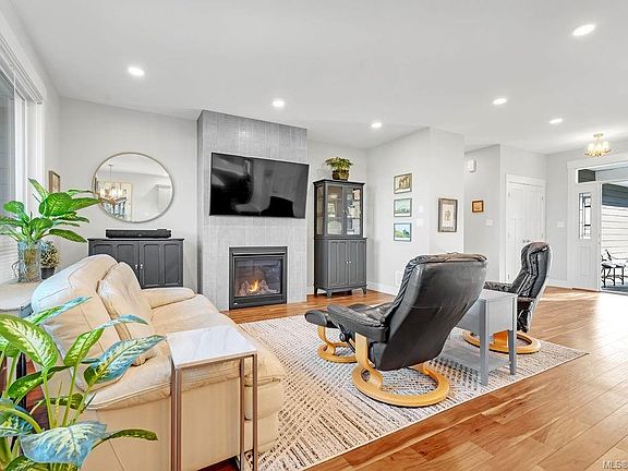 A practically new rancher. This quality built 3 bed home heated with high efficiency gas furnace & heat pump was completed in 2021. The modern kitchen provides painted wood cabinets, quartz countertops, stainless steel appliances, and tile backsplash. The space flows into the dining area, with sliding glass door out to a private, fenced backyard and partially covered patio—perfect for entertaining or relaxing outdoors. An expansive open plan layout with 9'-0" ceilings, big windows, gas fireplace, hard wood floors, & remaining home warranty until 2031. Retreat to your spacious primary bedroom offering a walk-in closet and a 3-piece ensuite. Refer to the extensive features outline to understand all the extras offered. The level southern exposure property is easy care landscaping & fully fenced with an RV parking space. An excellent location close to trails with a short drive to airport, ferries, & hospitals. Measurements & dates are approx, verify if important. This one won’t last long.