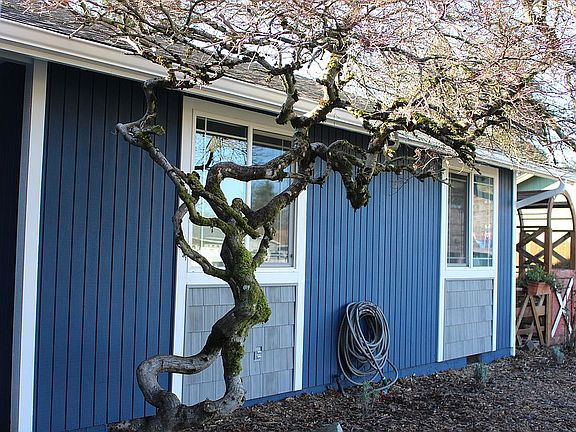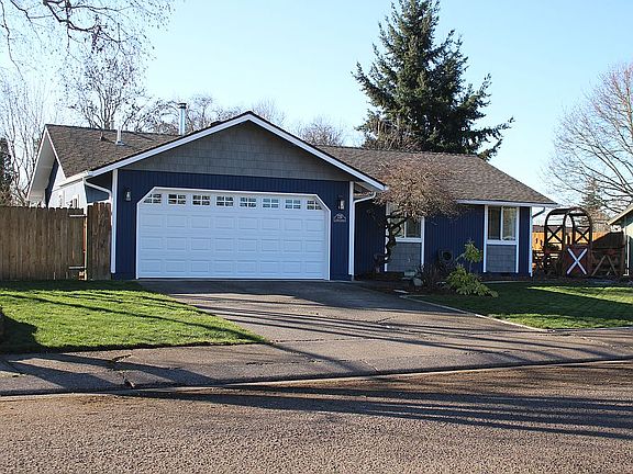 Step inside this beautiful 3 bedroom, 1.5 bathroom home. Totally remodeled and move in ready. New paint inside and out. New garage door and opener with Bluetooth. 16 solar panels on backside of roof. New HVAC system with duct work and electric AC, new gas tankless water heater, new appliances including washer and gas dryer. Completely renovated kitchen with new countertops, subway tile backsplash, sink, faucet, and garbage disposal. One bedroom has a Murphy bed with custom built in closets, dresser, shoe racks and storage. Enjoy entertaining outside in your backyard oasis. Large full fenced and landscaped yard with 8X12 shed, sunken fire pit, built in corn hole pads, mature blueberry and raspberry plants, cherry and nectarine trees. Located close to local schools and on a dead end street. Come see this amazing house.