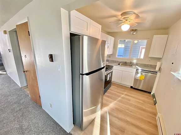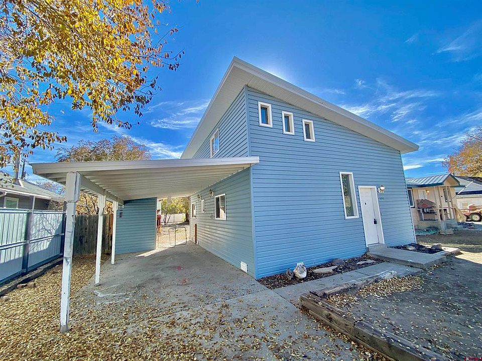 New flooring, paint and kitchen! This charming residence enjoys a convenient location near the hospital and schools. The primary bedroom is situated on the upper floor with a full bathroom, while the guest bedroom, laundry, and a half bathroom are on the ground level. The spacious living and dining areas feature a tall fireplace as a central focal point. The property also boasts a generously sized fenced backyard with alley access. Additionally, it includes a carport and storage shed. Take a look at this home today!
