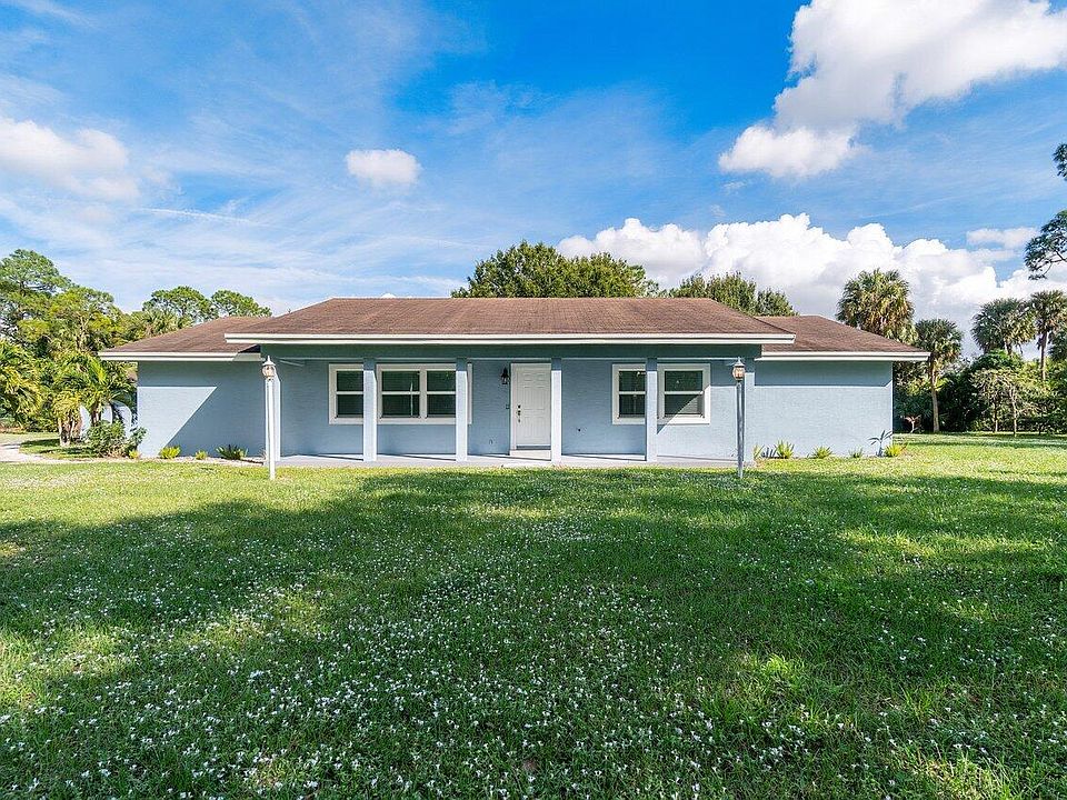 Amazing 1.89 acres corner home with POOL, completely remodeled with IMPACT windows & French Doors. Beautiful home w/ 4 spacious bedrooms, 3 bathrooms, detached oversize garage & shed. Open floor plan with recessed lighting, fans and overlooking great outdoor space. Prepare an elaborate dinner for family & friends in this well-equipped gourmet kitchen features mounted pot filler faucet, double ovens, separate wet bar sink for coffee/tea/liquor, granite countertop & backsplash. The flooring includes 30 X 30 tiles, new baseboards, the interior and exterior freshly painted including ceiling and covered porch. The master bedroom with walk-in closet, master bathroom with dual vanities, separate spa tub, dual faucets shower with frameless glass door, & separate single vanity. The house has spacious bedrooms with double closets. The 4th bedroom with French Doors to outdoor space. The laundry room with new water heater, attic stairs & unique PET SHOWER. The patio to the pool and backyard has plenty of space for outdoor activities. Property close to Publix shopping center, restaurants, parks, Wellington Mall & Hospital, easy access to I-95 or turnpike. DON'T MISS OWNING THIS PIECE OF PARADISE OF COUNTRY IN THE CITY, FLORIDA LIVING!