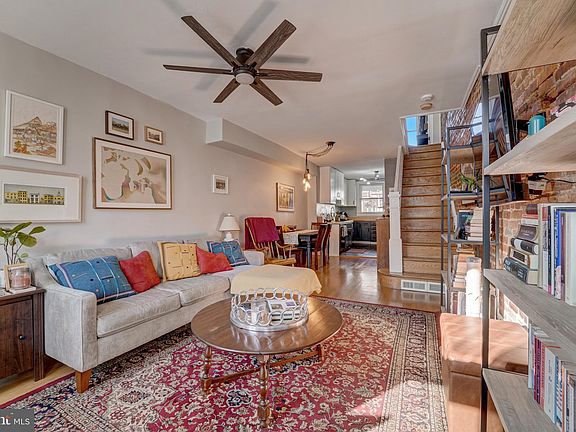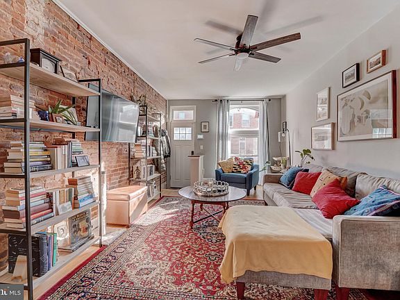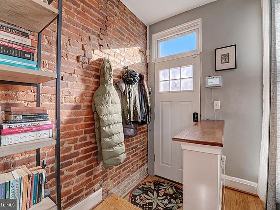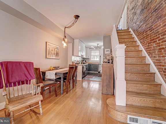 This Canton townhome, complete with a parking space, is an incredible opportunity at this price point. The kitchen has been fully renovated, boasting butcher block countertops, sleek black stainless steel appliances, and elegant travertine tile floors. The open-concept main living area features gorgeous hardwood floors and exposed brick, giving it that unmistakable Charm City character. Upstairs, the primary bedroom offers a spacious walk-in closet, high ceilings, and abundant natural light streaming in through the tall front windows. The rear bedroom is generously sized and can serve as both a second bedroom and an office. Conveniently located between the bedrooms is a generously proportioned hall bathroom. The unfinished basement is an excellent storage area and holds significant potential for additional living space. It includes a rough-in for a toilet and a door, making it possible to create a third bedroom. The newly constructed rear deck provides easy access from your private parking pad. Plus, the roof and windows are less than two years old.