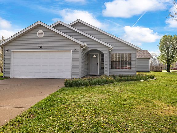 Welcome to 720 South Lantern Ridge Nixa, MO. This sprawling ranch is located on a HUGE corner lot, totaling almost half an acre! This home has a brand new roof and brand new siding. This one-owner home has been lovingly maintained over the years. As you enter you will notice the vaulted ceilings and large formal dining room/living room, leading into the kitchen also with vaulted ceilings. The open kitchen features new appliances, and island perfect for entertaining. The living room off of the kitchen features a gas fireplace with custom mantle. The home was added on to in 2004 with large bonus space that could be used for a variety of purposes! Nice storm door leading to back patio with doggy door. The bedrooms on the other side of the house all feature closets with shelving. The large master bedroom features a large walk-in closet and en-suite bath with jetted tub. There is a non-conforming room off of the master that could work as an office or nursery. The home also features an attached 2 car garage. Outside you will find two storage sheds, privacy fence, and huge yard. Do not miss this opportunity!