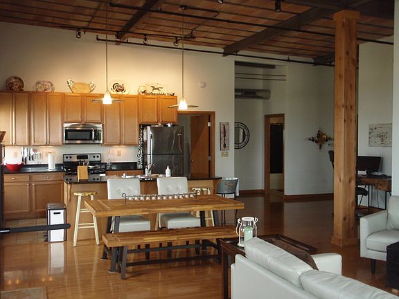 Luxurious Urban Contemporary Living w affordable price at it's best ! High ceiling open concept top floor loft , comer unit w unobstructed panoramic view & spacious 15 by 5 Balcony you can enjoy year round. Features contemporaneity exposed brick walls & wood beamed high ceilings(over 10 foot high) , Modern granite counter tops & vanity tops through out. Wood laminate floors in great room & warm carpeting in bedrooms. SS appliances. Huge Master bedrm(20x11) w ceramic tiled full baths & big walk in closet(8x7). Another spacious bed rm w walk in closet next to ceramic tiled full bath.2 car Underground parking(#36) & storage unit(#429) included. Just blocks away from the excitement of Downtown Racine and the Fabulous Racine's beautiful lakefront. Come & Enjoy Life!