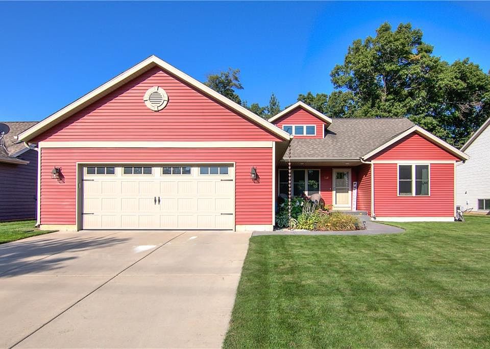 This 2013 built home is in immaculate condition & has an ideal floorplan! Open concept main level features 2 bdrms on one side of the home & the master suite on the opposite side plus main flr laundry. Kitchen has gorgeous custom cabinets, large island w/ brfst bar, window looking to the backyard plus a dining area that can fit an 8+ person table. Living rm offers great natural light, plenty of space for a larger sofa set & vaulted ceilings. Master suite features space for a king bed set, spot for a desk, tray ceiling, walk in closet & a bath w/ custom tile shower & window for extra light. Lower level has a HUGE family room that is perfect for game day/movie night (sectional set included), 4th bdrm, full bath, workout/craft rm & storage rm. Stunning backyard features great landscaping, oversized deck, firepit, mature trees & plenty of room for play/entertaining. Other features: appliances included, 3 panel wood drs, covered front porch w/ stamped concrete & quick access to Hwy 12/53.