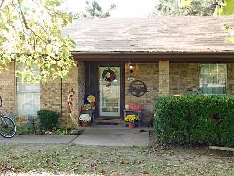 This is a 4 bdrm 2.5 bath home sitting on .52 Lot. You are walking distance to the Idabel High School and the baseball field. Just minutes from the hospital. This brick home has a partial enclosed double garage with a storage room attached. Back yard is completely fenced. Beautiful landscaping in the front. Entering the home a small foyer and to the right you will enter the family room, with wood laminate flooring and ceiling fans. The kitchen and dining area has ceramic flooring and Formica counter tops, dark cherry wood cabinets. There is a breakfast bar. You have a place to set a TV when in the kitchen/dining area to watch what your heart may desire. A small hall that leads from kitchen to the back covered patio and to the main bdrm with full bath. Also from the kitchen you will find a large utility room. The side door will lead you from the kitchen to the garage area. Also located in the back you have a small outbuilding. This home has so much to offer and just waiting on that new owner.