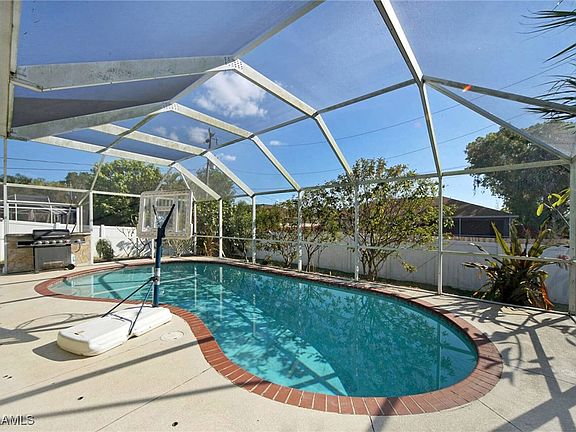 SW Cape Coral Pool Home with South Exposure. The Roof was Replaced in 2023 and NO Flood Insurance Needed! 3 Bedroom 2 Bath plus a Den or Office. This home features High Ceilings, A Large Kitchen with Granite Counters, Stainless Appliances and a Large Breakfast Bar. The Great Room has Glass Sliders that open up to the Screened Lanai and Pool which makes it Excellent for Entertaining. The Split Floor Plan is Perfect for your Family or Guests. The Inside Laundry Room includes a Washer and Dryer and a Fenced Yard for your Children or Pets. There is an Additional Room that could be used as a Formal Dining Room, Office or 4th Bedroom. This Home is hooked up to City Water and Sewer and was Recently Painted. Conveniently Located near Great Restaurants, Shopping, Schools and Medical Services with Quick Access to Ft. Myers, Punta Gorda, Pine Island and The Airports. This area has World Class Fishing at Boca Grande Pass and Excellent Boating Opportunities to Sanibel and Captiva Islands and Ft Myers, Beach. Don't Miss Out.... Own Your Piece of Paradise Today!!