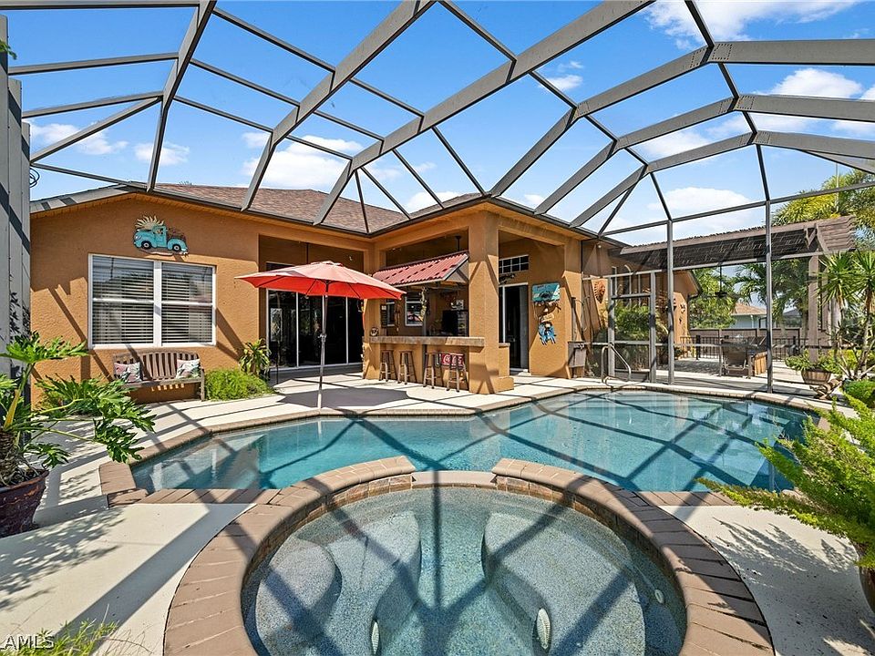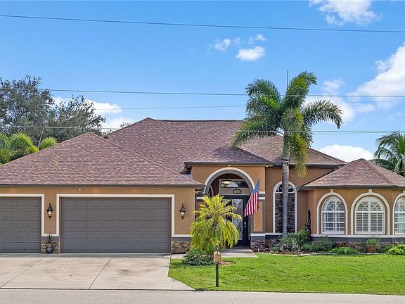House untouched by the storm, did not lose even a single roof shingle! This is your chance to own a piece of paradise in the heart of SW Cape Coral. Nestled on an oversized 3 lot site, this home offers a luxurious and private pool area with southern exposure, outdoor kitchen and fire pit, and plenty of room for family and friends. The updated kitchen features granite countertops, stainless steel appliances, and breakfast bar seating. You will love the 10' movie theater screen with projector and theatre seating - perfect for watching your favorite movies or sports games. Additional features include hard wood flooring throughout, large bedrooms, three bathrooms, and a three car garage. Recent updates include a 2021 roof and newer A/C. Don't miss out on this incredible opportunity - schedule your showing today!