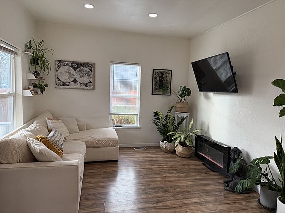 Beautiful craftsman home with historic charm but modern amenities. Walking distance to downtown, in safe location with close proximity to multiple parks, shoppes and schools. 4 bedrooms, 2 full baths with front and back yards for children to play or dogs. Primary bedroom with en-suite and walk-in closet with lots of room and two shelving units for shoes and accessories. Downstairs has HVAC while upstairs is easily controlled by mini-split heating and a/c unit. Spending your summer sitting on the front porch or in hammock in the back yard becomes a relished evening event. Lovely landscaping with fruit trees, and a backyard that create a great summer oasis including peaches, figs, cherries and plums and above ground raised bed for light gardening. Off street parking, with universal electric car hook up in driveway for ease of charging. Security cameras throughout property for ease of safety along with video doorbell. Storage shed on property along with outside tools storage available. Sewer, trash, landscaping and internet services provided by landlord, water will stay in landlord name with bill-back contract. Washing machine, dryer and refrigerator onsite. 1 year lease agreement