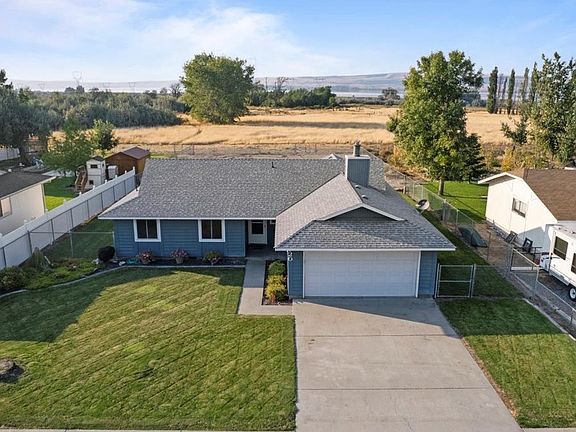 Well maintained, one owner home located in established neighborhood. Three bed, 2 bath home sits in 2 city lots. Family room, kitchen, and dining room all flow together. All appliances are included. Has a separate laundry room. A very nice lawn and landscaping with backyard enclosed with cyclone fencing and has TUG sprinklers. And don't forget the VIEW - Columbia River and the famous Boardman sunsets. Call for appointment today ! Must see to really appreciate !!