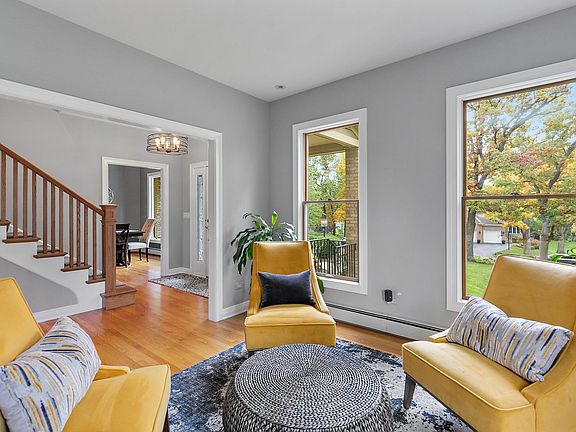 Nestled in the Indian Hills neighborhood. Spectacular home sits on a park-like 2/3-acre piece of paradise! Professionally landscaped with heated driveway leads you to the front porch, enter to a brightly lit foyer. Newly finished hardwood floors throughout first floor with living room, large family room with expansive windows and double-sided fireplace, recently added three season room for extensive outdoor living. The thoughtfully updated kitchen (2020) boasts bright white shaker cabinets and on trend quartz counter tops. Separate dining room and half bath. On the second floor you will find four bedrooms including a master suite plus bonus room. The recently refinished basement offers a large movie area, a bar for entertaining, workout room, full bathroom, and additional bedroom. Nothing to do with a new roof, new gutters, permanent "smart" holiday lights, two new AC units and AC space packs (2022), new hot water tank (2022). New garage doors (2022), garage floor epoxy (2020). Close to downtown shopping, restaurants, and Metra D47 and D155 Prairie Ridge High School.