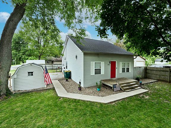 CURB APPEAL! This sweet 2 bedroom, 1.5 bath home will surprise you how spacious it feels when you walk in. The main living space has partial cathedral ceilings, open concept with living/dining area & a GENEROUS amount of storage throughout. The shed provides even more storage outside. The fenced back yard includes a large deck & has a hook up for a hot tub. Although the house was originally built in 1910, it was re-constructed from the foundation up in 2000. Roof was completely replaced in 2019, gas furnace replaced in 2018, Radon Mitigation system, vapor barrier, with transferrable warranty was completed in 2023, also recent mold remediation was done in the crawl when the other work was completed in 2023. Home Warranty Included. MUST SEE!
