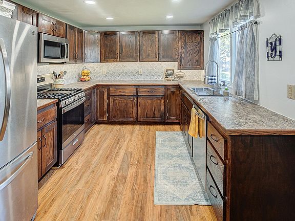 This adorable 2 bedroom home sits on a one acre corner lot with perennial flowers, flowering bushes plus mature trees including mulberry and walnut trees. In 2020 the home was renovated including updated plumbing, electrical, new HVAC, flooring and kitchen. The kitchen has custom oak cabinetry with 2 lazy susans, under cabinet lighting, a beautiful tile backsplash and stainless steel appliances (2020). Two large bay windows in the dining room. The living room also has lots of windows. The 2nd bedroom has a wardrobe for the closet that will stay with the home. This is a cute home with an excellent lot. It will be the perfect place for someone to call home.