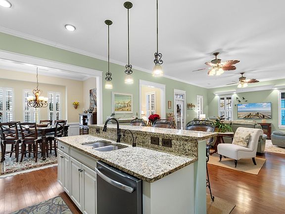 There's a certain feeling you get the moment you walk up to this home in Sweetgrass Square---like you've finally found the place where life slows down just enough to enjoy it. The welcoming front porch (complete with a ceiling fan for those warm Carolina evenings) sets the tone before you even step inside. Once you enter, the home opens into a bright, beautifully finished main level with hardwood floors and crown molding that give everything an elevated, timeless look. The kitchen is the kind of space that makes everyday moments feel special---granite countertops, stainless steel appliances, upgraded cabinetry, a tile backsplash, and even an Insinkerator instant hot water dispenser for your morning tea or coffee. It flows effortlessly into the living and dining areas, making the whole first floor feel connected. The first-floor primary suite is one of the home's biggest luxuries. With a tray ceiling, walk-in closet with custom shelving, and a spacious ensuite featuring dual sinks and a walk-in shower, it was designed to feel like your own private retreat at the end of the day. Upstairs, the two additional bedrooms each include custom closet shelving---one of those thoughtful touches that make the home feel truly move-in ready. What really sets this home apart is the level of care that has gone into it. A Briggs & Stratton whole-house generator, Puronics water filtration system, whole-house surge protection, and hurricane shutters all bring an incredible sense of security and peace of mind. The owners also completed major updates in 2023, including a new roof, new gutters, and a fresh exterior repaint. Even the practical spaces have been elevated---the laundry room includes extra cabinetry and a built-in sink, and the garage features pull-down attic stairs and Fleximount overhead shelving for smart, easy storage. Step outside and you'll find one of the home's most charming spaces: a brick-paver patio with a pergola surrounded by mature landscaping. It's the perfect spot for quiet mornings, casual dinners outdoors, or simply enjoying the breeze. Homes in Sweetgrass Square don't come up often, and this one has the kind of upgrades, care, and warmth you can instantly feel. If you've been waiting for a home that's not just beautiful, but truly loved---this is the one!