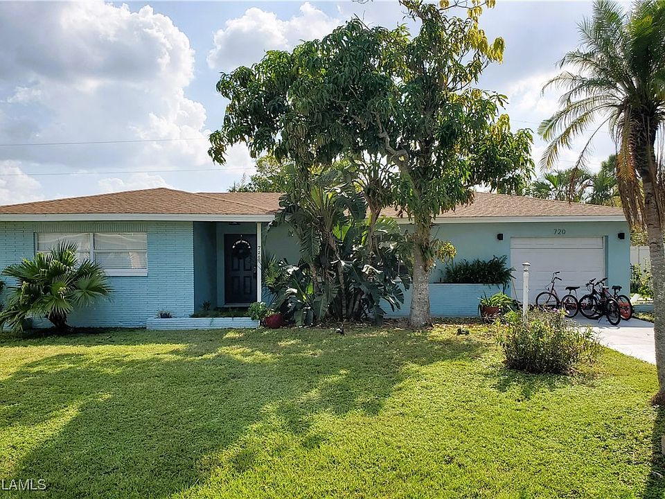 Bright, cheerful mid-century gem in the highly desired Cape Coral Yacht Club Area! This renovated mid-century cottage has the original restored Terrazzo floors thru-out! SOUTHERN Rear Exposure means sun on the back patio all day. The Galley Kitchen has Acacia wood butcher block counters, new large deep 33" single vessel stainless sink with new lower Hickory cabinets and stainless appliances. The newly renovated bathroom is spa-like and gorgeous. The home has 1074 sq ft 2 spacious bedrooms plus a den and an oversized one car garage. All new coastal baseboards, trim, Interior shaker style doors, Interior paint( ceilings, walls, trim, doors, baseboards, etc). New interior and exterior light fixtures. The dishwasher and stove hood were new in Dec 2023. The stove and refrigerator are approx 5-7 yrs old. New AC Jan 2023. In 2010 the home was re-wired, electric panel was updated, re-piped with CPVC for water, the sewer pipes were replaced, the windows were all updated and duct work for HVAC was also replaced. ALL Assessments PAID. The Cape Coral Yacht Club has a beach, restaurant, boat ramps, marina, etc. Located in a great area to walk, jog or bike ride. Walk to downtown Cape Coral and the Saturday morning Farmers market. Grocery stores, banks and many restaurants also within walking distance. Quick access to Fort Myers. If your tired of apartment or condo living this home is for you. Come see this one!