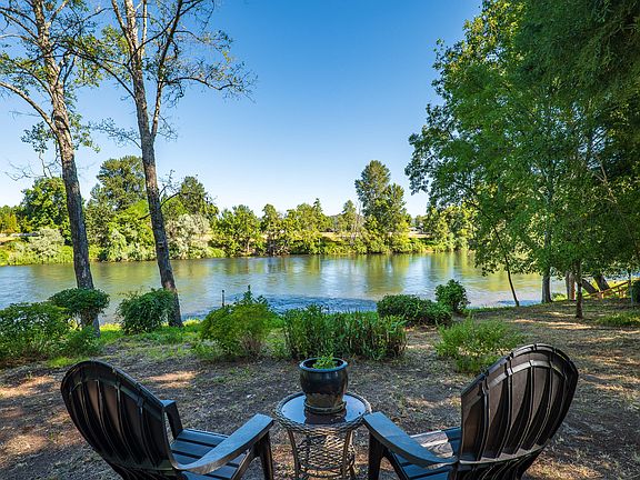 Luxury and a peaceful oasis on the river awaits you when you come home to this fabulous property. This beautiful home features soaring ceilings and massive windows to take in the view of the river in the living room and master suite. A kitchen any cook would love with breakfast bar and island opens into a dining room and out onto the spacious deck with steps down to your own private beach. Master suite with tile shower, dual sinks and plenty of storage and two more bedrooms for your guests and guest bath round out the main home. The detached artist studio has newer hardwood floors, 1 bedroom/ 1 bathroom and a wall of sliding glass doors as well as a sweet deck to enjoy the amazing garden that awaits right outside complete with Gazebo, Koi pond, paths that meander and benches to relax on. Once you lay eyes on this beautiful property you will see why it was featured on the garden tour for many years. Truly a special place and one you don't want to miss.