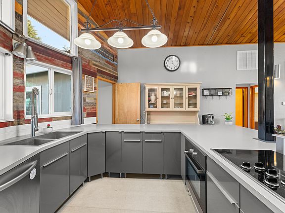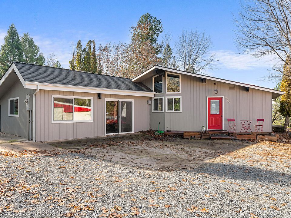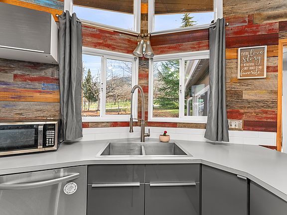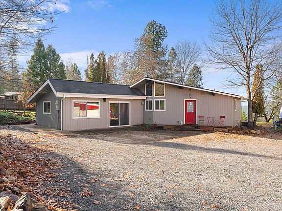 Beautiful Country Living in a Peaceful Mountain Setting. Mid Century Modern Style Home, 1,565 Sq Ft, 3 Bedrooms, 2 Baths on 1.99 level tree filled acres. A wall of windows showcase Mountain Views. Vaulted ceilings in great room, & sky lights bring in lots of sunshine. Large light & bright Kitchen remodeled in 2015 with Bosch cook top, convection oven, & tons of counter space. Primary Bedroom with slider to the patio. Split floor plan with 2 additional bedrooms, Updated guest bath, & large bonus room completed in 2019 that could be a 4th Bedroom, office, etc.... New copper plumbing throughout in 2019. Cable & high speed internet. Fully Fenced with additional dog run. RV parking with full hookups. Large detached 3 car garage/shop with 220V service, storage room, work area, & room for multiple vehicles. Patio slab ready for your relaxing Spa in the evenings. Second smaller detached garage with a room for your favorite animals. 6 Organic Walnut & Black Walnut trees & an Organic Pair tree.
