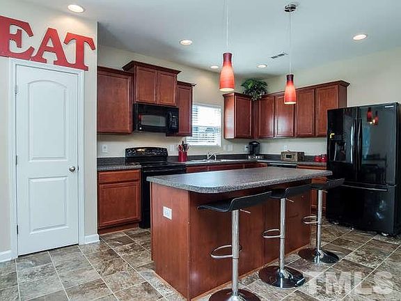 Great location - only minutes to Raleigh & I-540. This 4 bedroom home features large fenced in backyard. Terrific gourmet kitchen with lots of cabinets, HUGE island with seating & great counter space. Home comes with surround sound in the backyard. Very open feeling with open staircase feature. Formal dining room/office. Master Suite features garden tub, his & her closets & double vanity. NEW CARPET thru out. Community pool & playground! 100% USDA financing.