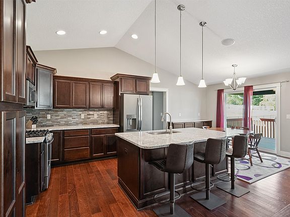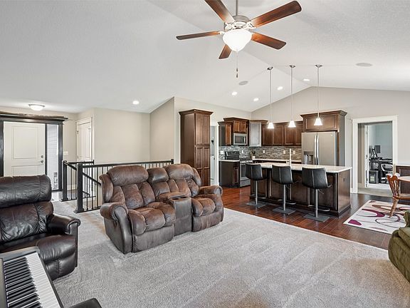 This stunning 4-bedroom ranch home offers over 2,800 sq ft of beautifully finished living space. Thoughtfully designed with an open floor plan, the great room features a stone fireplace, while the expansive kitchen showcases a large double-sided island with extra storage and a built-in buffet, perfect for entertaining. The primary suite is a retreat of its own with a spacious walk-in closet, dual vanity, and a tile shower. Two additional bedrooms, a full bath, and convenient first-floor laundry complete the main level. The impressive lower level offers a spacious rec room, fourth bedroom, and full bath, providing plenty of room for gatherings or guests. Additional highlights include dual-zoned HVAC, whole-house audio on both levels and the deck, a 3-car garage, CAT 5 wiring, digital antenna, and a Pure Light solar system that maximizes efficiency and minimizes utility costs. This home truly blends comfort, style, and smart living. All information obtained from Seller and public records.