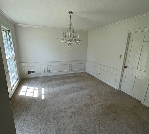 Plenty of space in this 4 bedroom and 3 bath house. Master suite with full bath on the main level and 3 bedrooms upstairs with 2 baths. Carpet mainly through the home with LVT in the kitchen and tile in the bathroom. Living room, dining room and den. Carpeted basement usable for storage or sitting. It shares the two car garage. Large front yard and nice deck on the back of the house to enjoy cool evenings. Two car garage with automatic door opener. Plenty of parking in the back of the house. Utilities are not included but we do cut the grass. We cut the grass. 12 month minimum lease. Rent is due on the 1st of the month and late fees apply after the 5th.