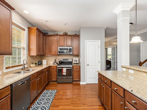 Discover a delightful blend of comfort and charm in this inviting home, nestled in the Morgan Creek subdivision. This property features a welcoming fenced backyard, spacious layout, and thoughtful details throughout. Step inside to the generous kitchen complete with granite countertops and custom roll-out drawers. Enjoy mornings in the four-season sunroom with the back deck ready for enjoying fall evenings. The main floor includes a cozy guest bedroom and a versatile study. Upstairs, the primary bedroom is a true retreat, complete with a custom closet. The second floor also features two additional bedrooms, bonus room, and loft area. With its close proximity to the community pond and scenic wooded trails, this home is ready for you!