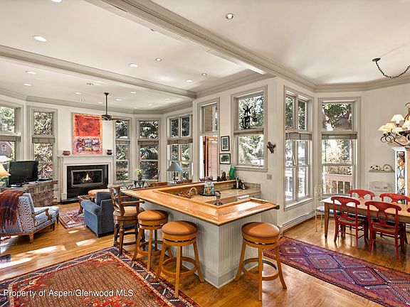 Spacious home with a great layout in Aspen's famed West End. Five bedrooms and six baths including a main floor Master suite. Southern exposure and views of Shadow Mtn. from the living room and two exterior decks. Not on a 'through street'- so virtually no traffic out front. The best value for a single family home in this iconic neighborhood. Price reduced! Seller willing to trade for income producing property of equal or lesser value, see listing Broker.