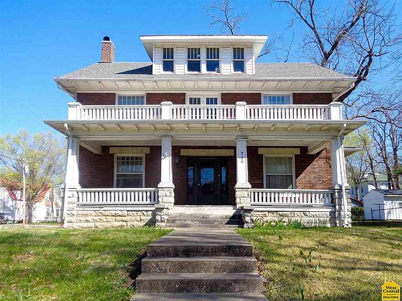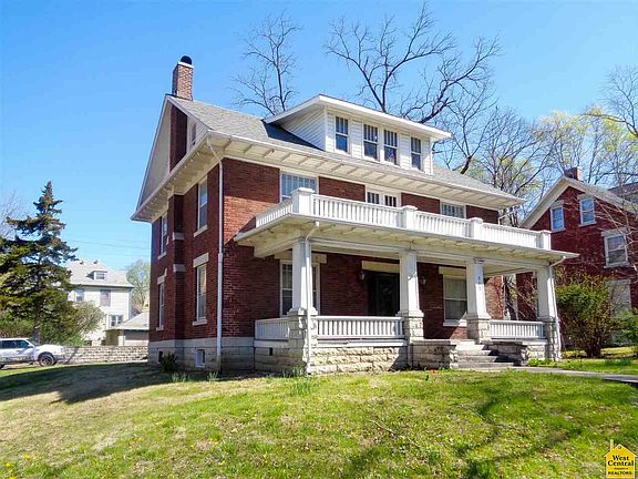 Beautiful 2 1/2 story Turn of the Century brick home, on Broadway. Grand entry foyer with ornate wood work, stairway, railings and glass french doors to large dinning room. High ceilings throughout the main floor. Lving room with fireplace and hardwood floors. Separate servants stairs off kitchen to upper levels. Second level has large foyer area, 4 bedrooms, one with walkout door to balcony, 2 Jack and Jill bathrooms, one with claw foot bathtub, one with updated shower. 3rd level is one large room, could be family room, hobby room or fifth bedroom. Full basement partially finish with wood stove, half bath and sauna. High efficiency gas furnace, air conditioning and two car detached garage. This home is loaded with character, charm, lots of space and close walking distance to park with pool and public library.
