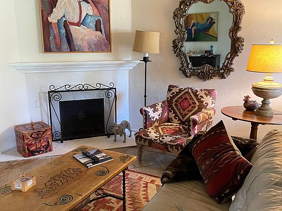 Working fireplaceExposed beam ceilingsGas stove kitchenDining roomGated single-story historic complexPatio seating everywhereSlate floors