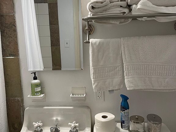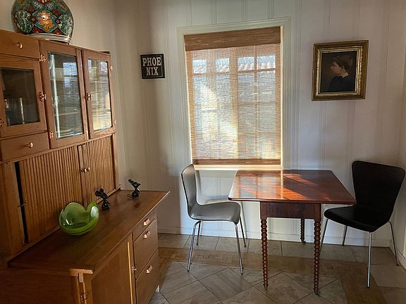 One bed, one bath. Exposed beam ceilings, slate floors, gas stove kitchen, working fireplace. Separate living room, dining room.